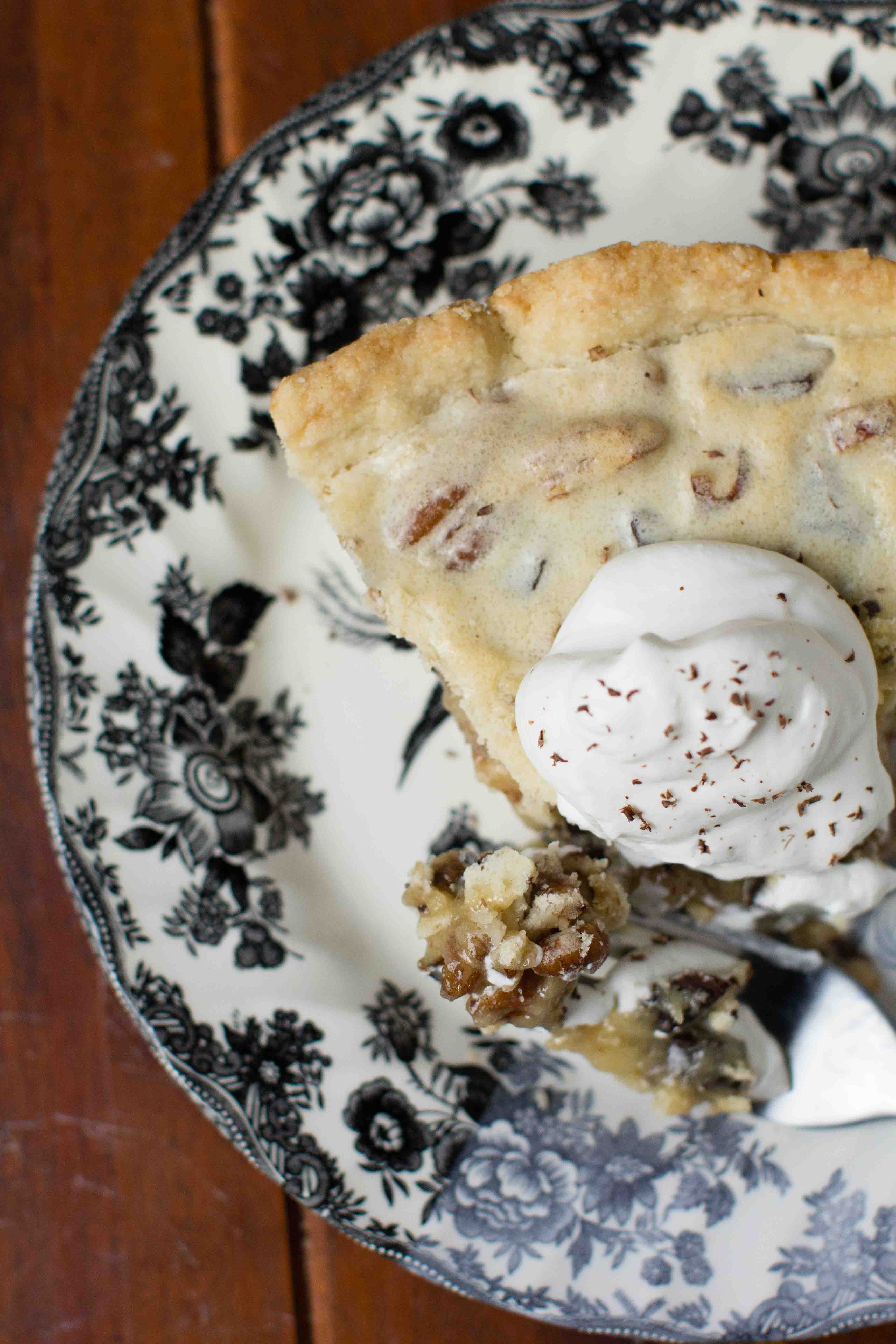 This pie. It’s crunchy, filled with chocolate chunks, pecans, a buttery crust and just a splash of whiskey. Because why shouldn’t pie have a bit of whiskey in it? Traditionally this pie is made with bourbon, but you use what you have, and in this case it was a cute little bottle of Tennessee whiskey. Kentucky Derby Pie is ready to eat with a scoop of whipped cream and some chocolate shavings - fancy hats not included. Use my pie crust recipe for the best pie crust ever made. Ever.