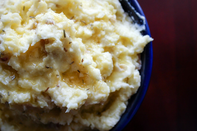 Say it with me-mashed potatoes with rosemary garlic olive oil. Yum. Mashed potatoes are very personal to each of us-chunky, creamy, skin, no skin. Made with a mixer, food processor (no!) or by hand, if you love mashed potatoes you know exactly how you want them. I could eat mashed potatoes all the time, and think nothing of it-but these are definitely dressed up, with the addition of rosemary garlic olive oil you take an already awesome side dish, and elevate it to Janet Jackson status. If you haven’t noticed yet, I do love to compare my food to music divas. Add more herbs, some green onions, more garlic, tons of butter, whipping cream, buttermilk, or whatever else sounds good. But make a lot, because you are going to want seconds. And feel free to keep these all to yourself, or share with a friend. Personally I would keep a bit back just for some silent reflection.