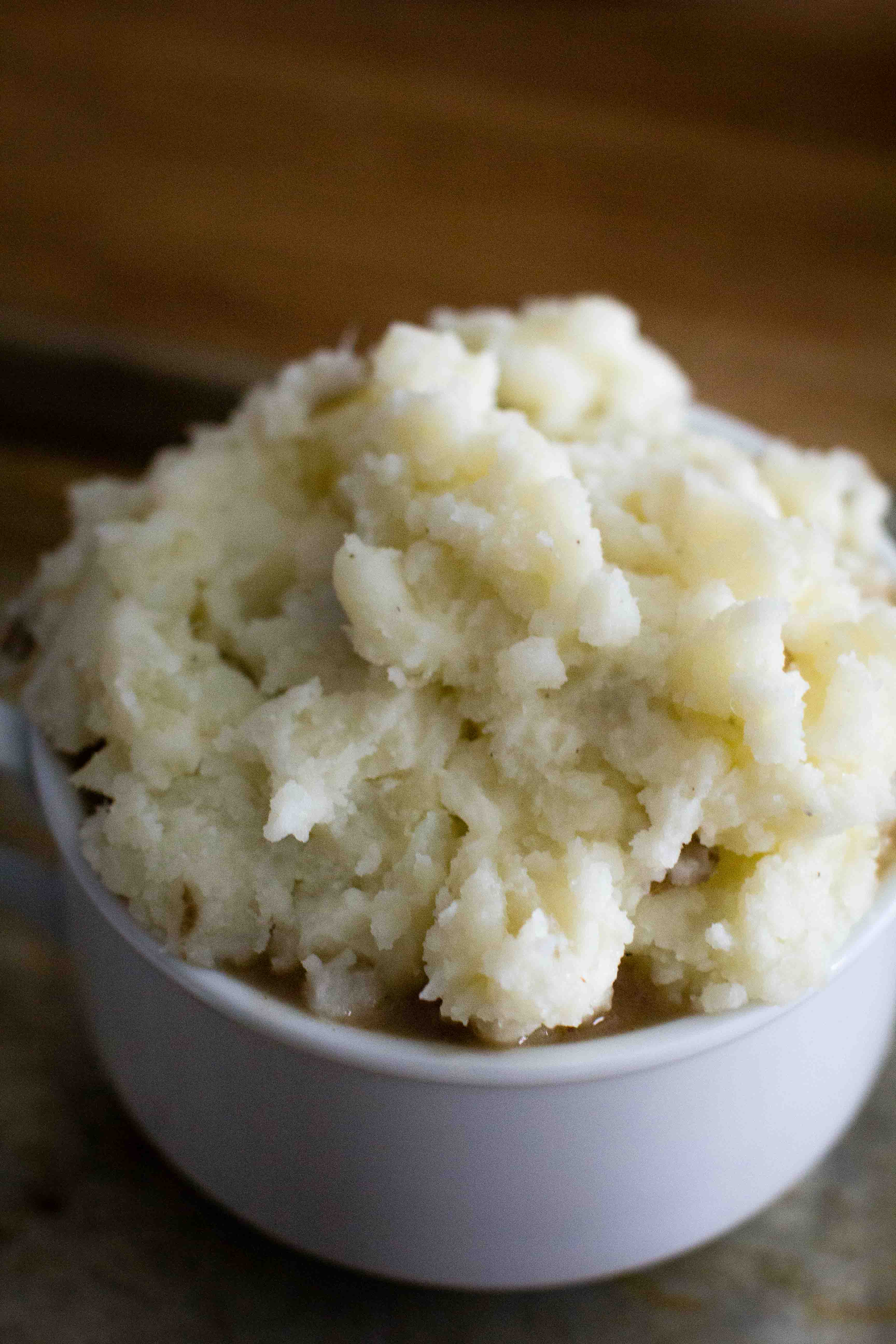 - While meat is simmering, cook the potatoes until fork tender on the stove, generously salting the water.
