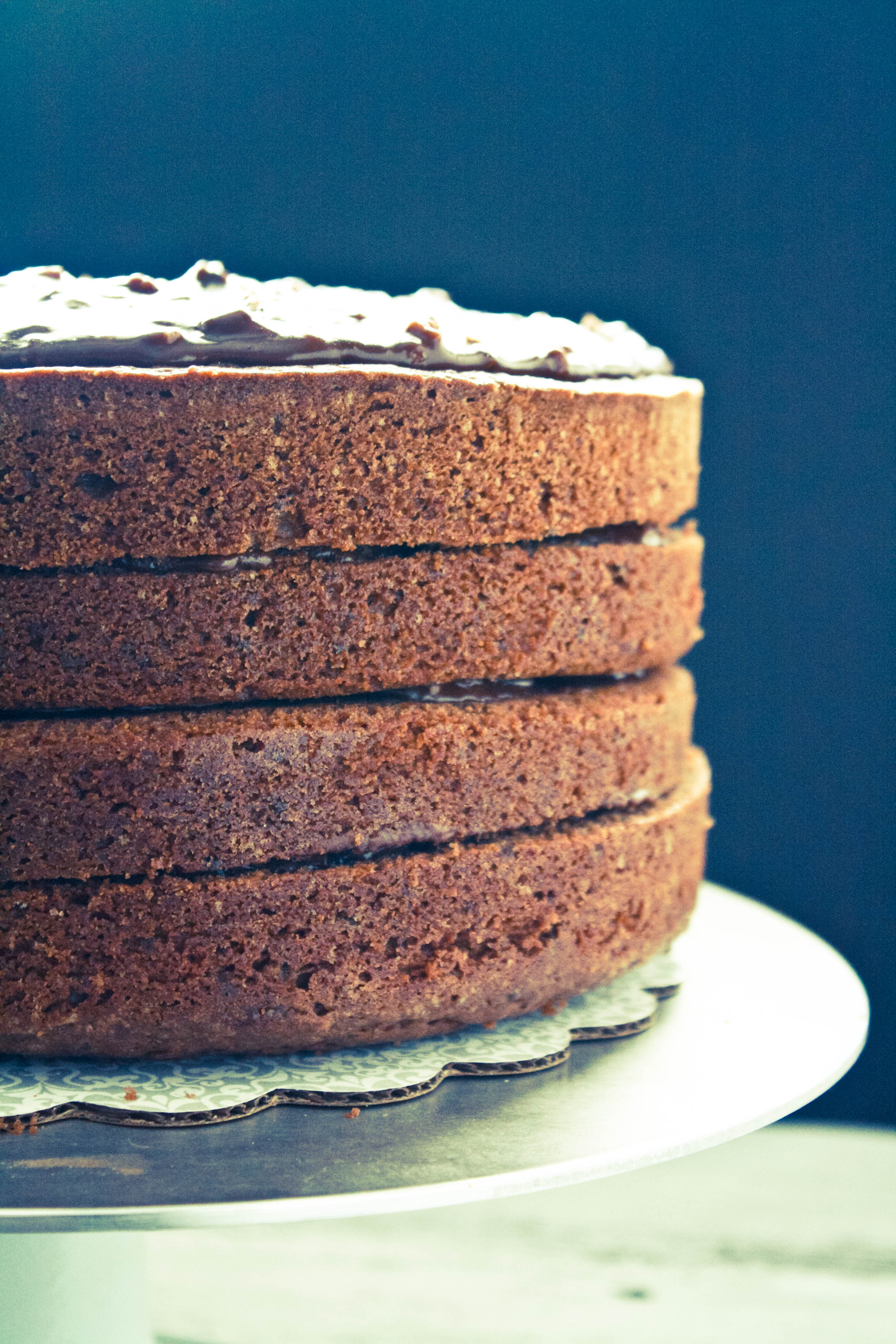 I am really proud of not only this picture, but this cake. I feel in a cliche way it’s kinda me on a plate. Layered, a bit complicated to look at, but really sweet on the inside. I have had some up and down feelings about my baking, myself, my role in my life, what I want to be/do lately, and I feel I am really expressing myself through my food. This cake is a chocolate buttermilk cake with chocolate pecan frosting-it’s in Bon Appetit’s January issue, from a restaurant in Charleston, SC. While I am sure the Fat Hen does it 10x better than I do, I really love how this cake turned out. Moist, not too sweet, with a great frosting. And I really felt good for all the compliments I received on this cake photo. So Bon Appetit, if you need an amateur on the payroll, please let me know!