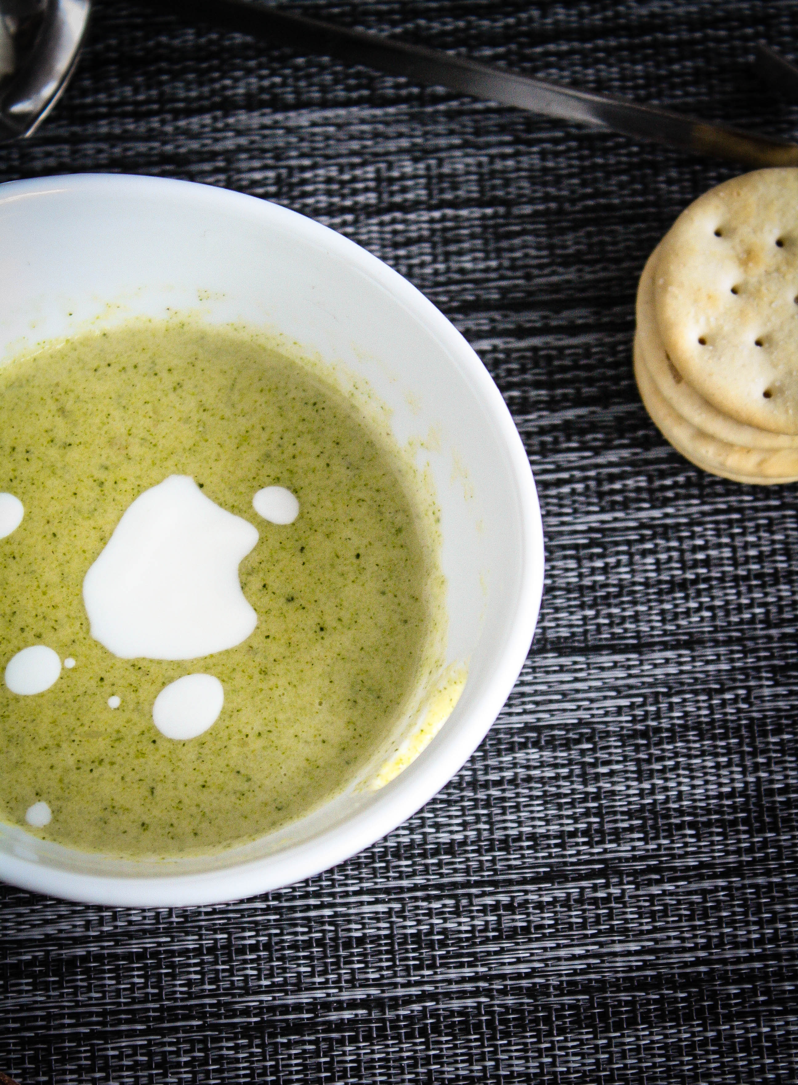 My co-worker (and friend for life) and I joined the summer CSA at work. Last week we got a lot of broccoli. I am going to tell you, I am not a broccoli fan. But I wanted to cook with it, because I am a complicated soul like that. So I browsed the interwebs for broccoli soup recipes. So many. Creams, and cheese and what have you. So I made this one up for you, and while the official work taste testers haven’t added their input yet, I would never steer you wrong. So it might be hot out, but soup is for any time of the year. And in some places it’s winter, so enjoy it now on a cold night. Add some sour cream, have a crusty slice of bread and a bowl of soup, and remember that broccoli makes your eyes shine (or so my gran told me about any vegetable as a kid)
